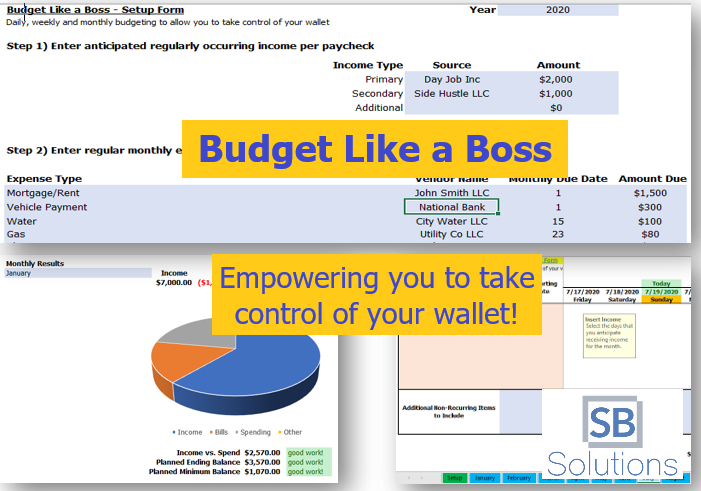 With Spreadsheets for Success you will quickly have the power to make the perfect decision with Decision Buddy, plan a large event with Event Plan Partner, find financial independence with Financial Freedom Finder, or simply set and maintain goals with Goals for Greatness, among so many more benefits!